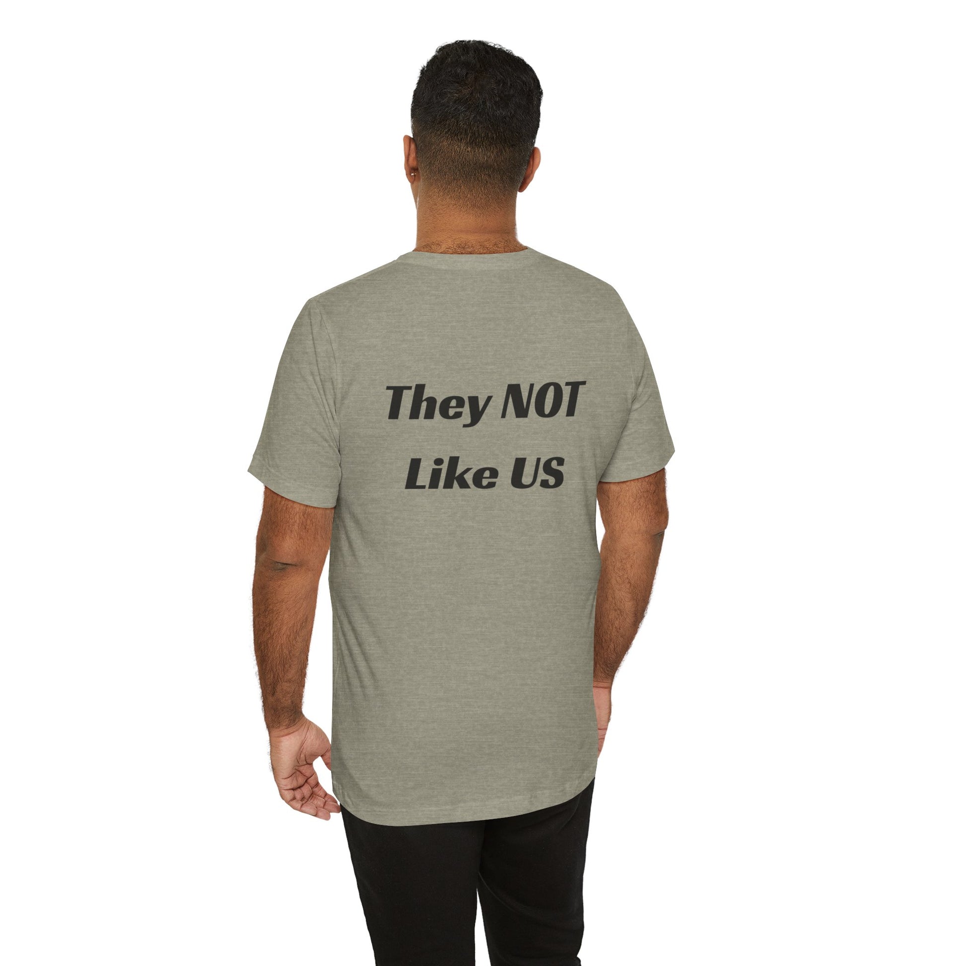 Show others how you feel while letting other know the truth. They NOT like US. This classic unisex jersey short sleeve tee fits like a well-loved favorite. Soft cotton and quality print make users fall in love with it over and over again. These t-shirts have-ribbed knit collars to bolster shaping. The shoulders are tapered for a better fit over time. Dual side seams hold the garment's shape for longer.